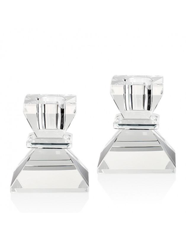 Coppia di candelieri in cristallo dai riflessi di luce bianca