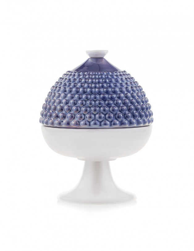 Moderna ed accattivante, la scatola portaoggetti blu cobalto a forma di pumo firmata da Emò Italia.