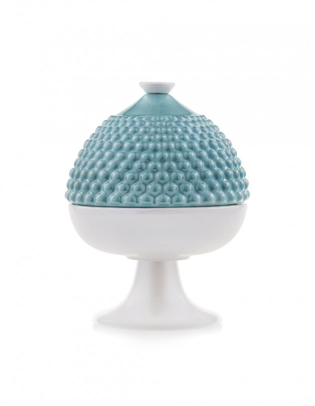 La scatola portaoggetti celeste a forma di pumo di Emò Italia emerge per raffinatezza.