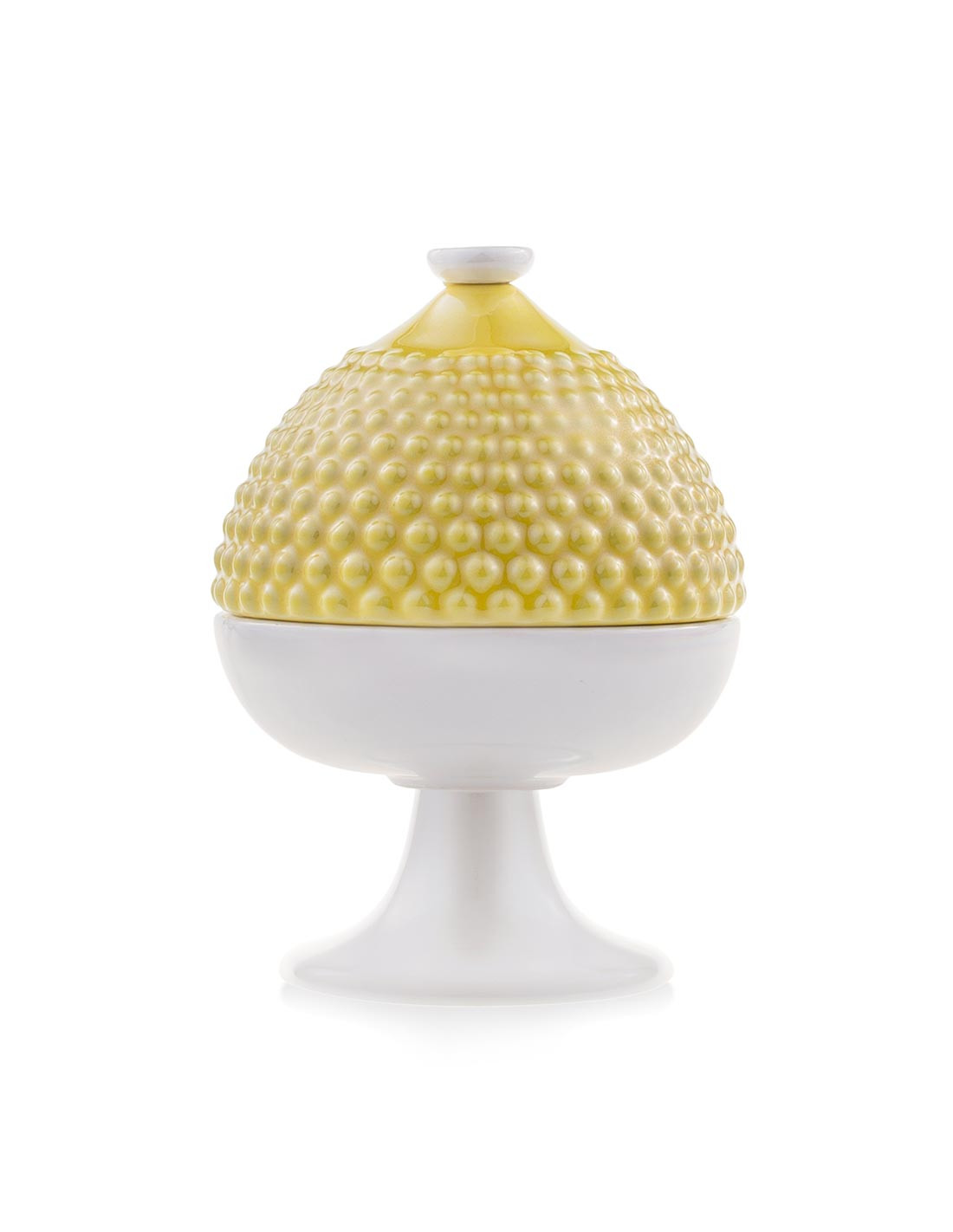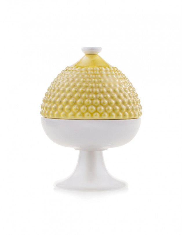 Briosa, la scatola portaoggetti gialla a forma di pumo di Emò Italia, simbolo di buona sorte e felicità.