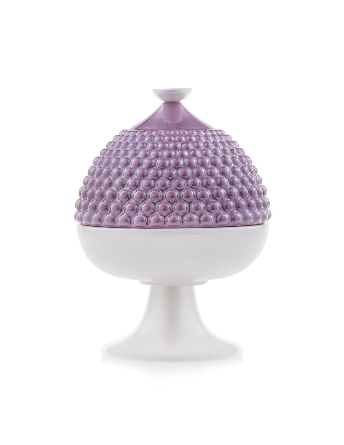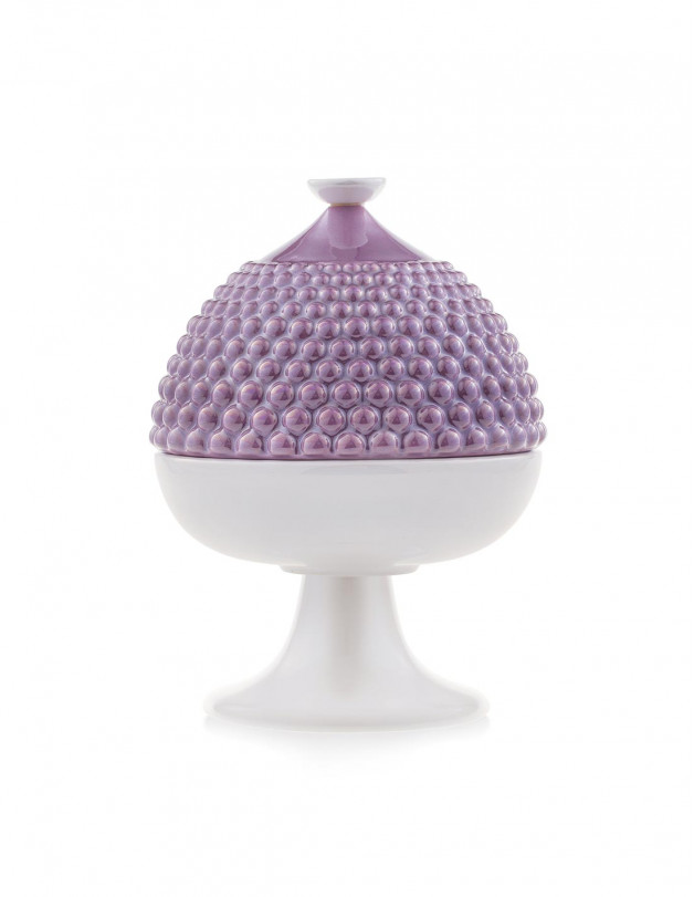 Raffinata scatola portaoggetti lilla a forma di pumo pugliese di Emò Italia, afferente alla linea Segnali di Pumo.