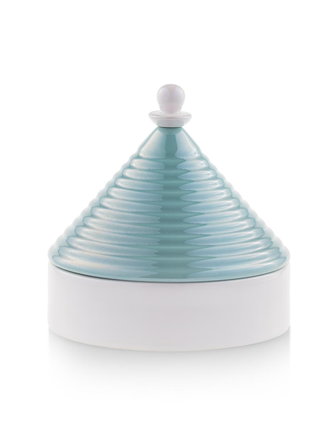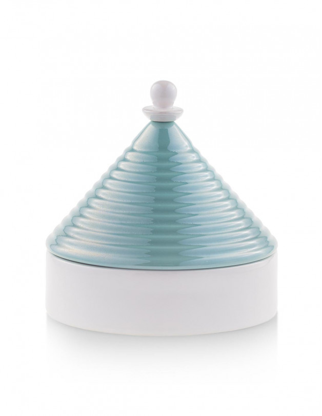 La scatola portaoggetti celeste a forma di trullo di Emò Italia è un omaggio alla Puglia.