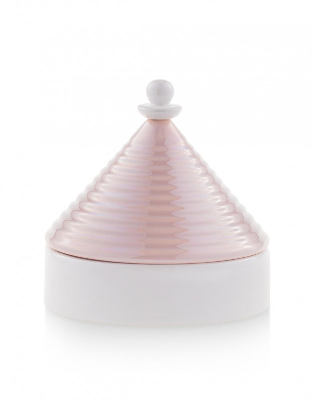 Dal coperchio color cipria, la scatola portaoggetti a forma di trullo di Emò Italia è davvero chic.