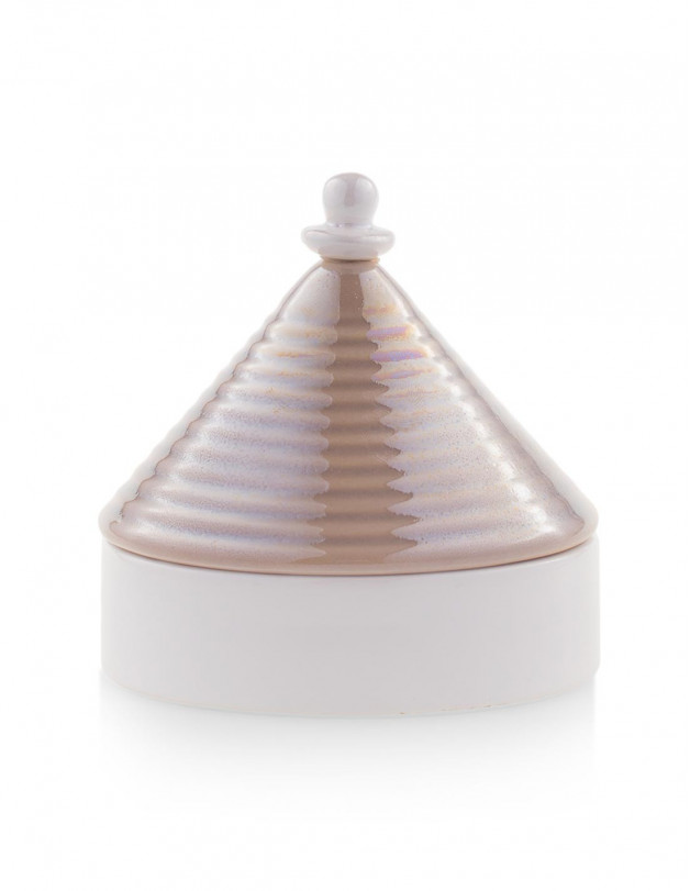 Splendida, la scatola portaoggetti fango a forma di trullo di Emò Italia della linea Trullallà.