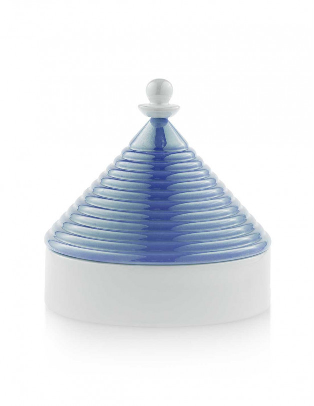 La scatola portaoggetti blu cobalto a forma di trullo è una delle più sugggestive di Emò Italia, afferente alla collezione Trullallà.